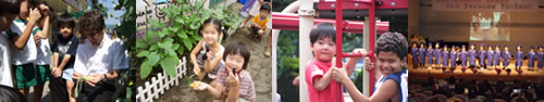 「三つ子の魂百まで」と言われ、幼児期をいかにすごすかは子供の将来に、社会に、ひいては世界の平和の大きなかぎをにぎっています。ココス英語幼児園では「幼児教育」といってことさら身構えることはしませんが、子供たちのためにのびのびとした環境作りを目標にしています。